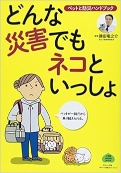 どんな災害でもネコといっしょ:ペットと防災ハンドブック (小学館 GREEN MOOK) (日本語) ムック – 2018/3/26 - 災害時、ペットと生きのびるためにしておくこと 防災に関する書籍は多く出版されていますが、「ペットと防災」に関する類書はほとんどありません。今後南海トラフ大地震の発生も予想され、今や日本全国安全な場所はありません。過去の地震で、避難所はペットの受け入れ体制は万全でなく、飼い主とはなればなれになった事例も多くありました。ペット同行可能だったとしても動物の鳴き声、におい、アレルギーなどでトラブルが相次ぎました。そんな状況を避けるため、飼い主が普段からしておかなければならないこと、心構え、飼い主自身が助かるための発災時の状況別行動パターンや、様々な避難方法、パニック猫の起こりやすい症状とその対処法を具体的に解説。再建に向けてペットとどう歩んでいったらよいかまでを、体験者の声を交えて提案します。さらに行政の取り組みを取材、多角的に災害時の対処法を示します。監修は熊本地震を体験した徳田竜之介獣医師。災害に備え、マグニチュード9にも耐える動物病院を建設し、発災直後からペット同伴避難所として病院を開放、ペットの同伴避難を訴え続け、環境省のガイドライン作りにも協力しています。自身の経験を踏まえ、災害とどう向き合うべきかを総合的に監修いただきます。